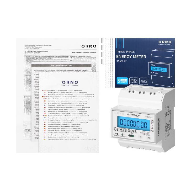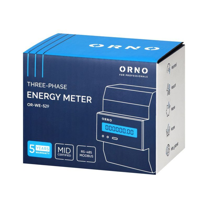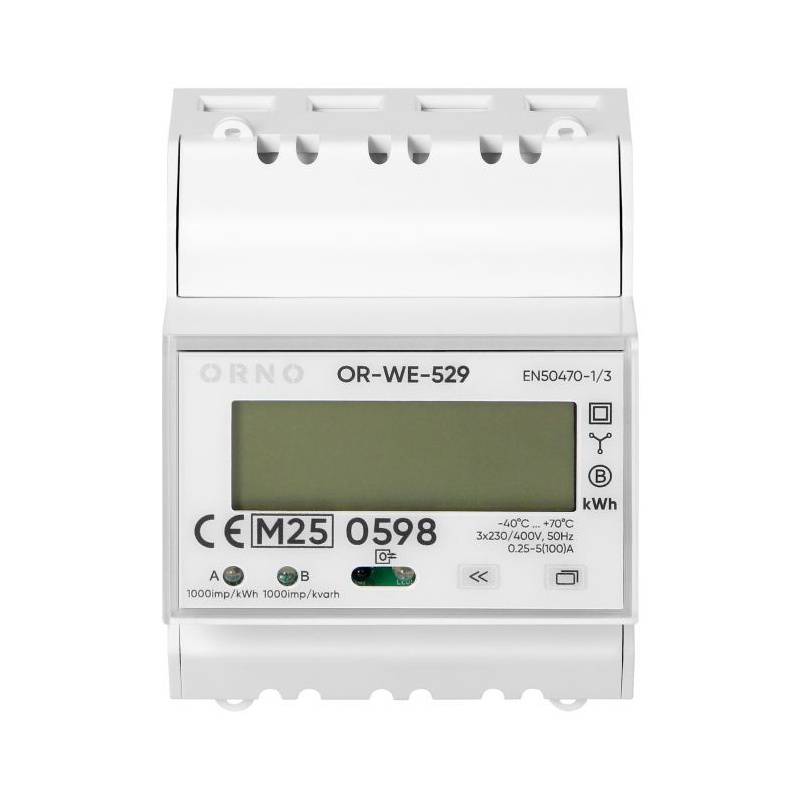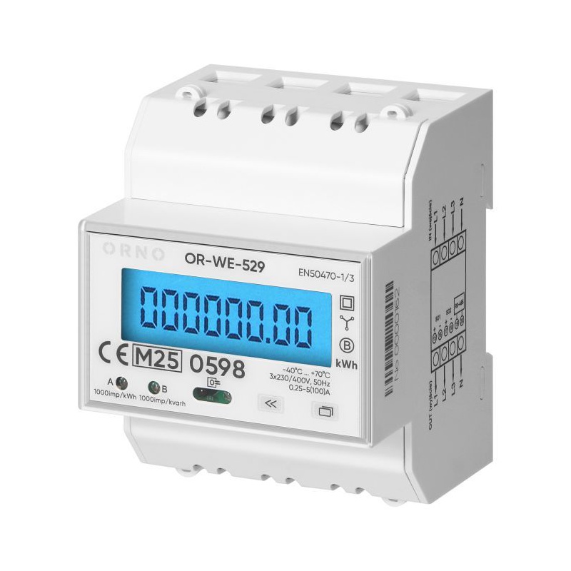OR-WE-529 Elektromer OR-WE-529 3-fázový, LCD, MID, 100A, DIN, RS-485 port