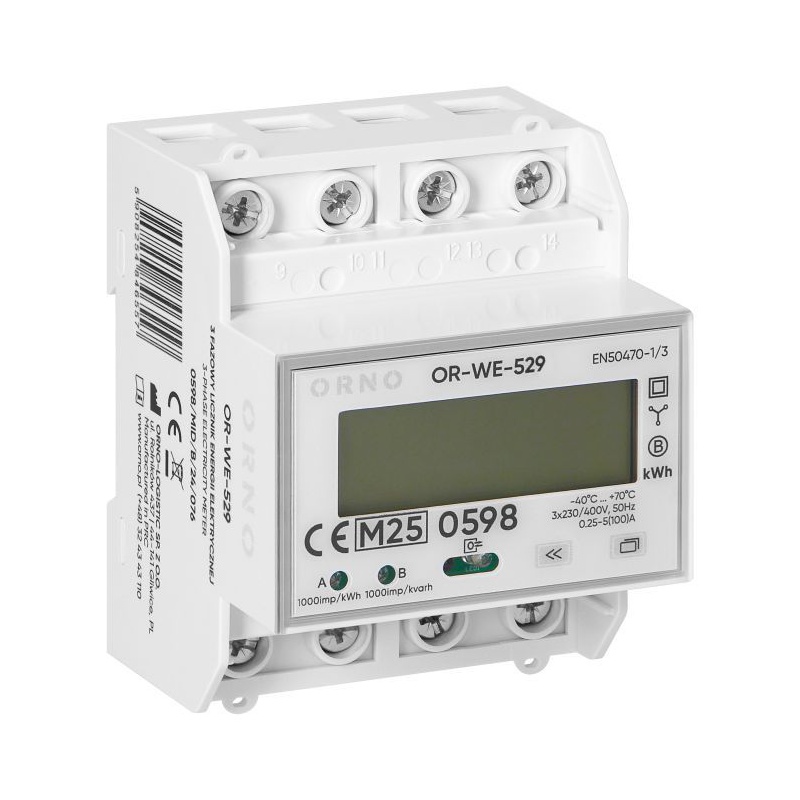 Elektromer 3-fázový LCD ORNO WE-529 s certifikátom MID, podsvetlený displej