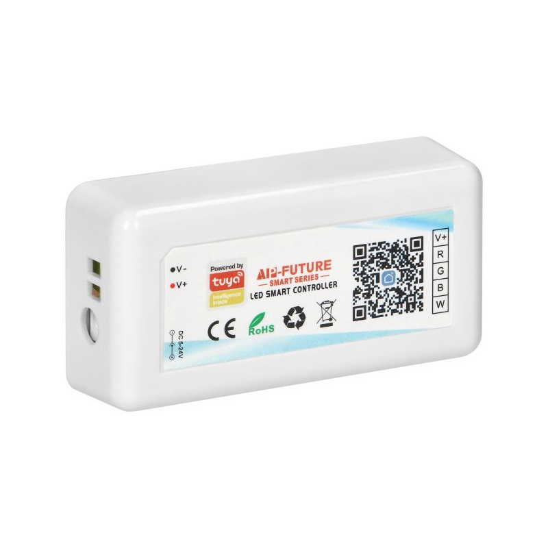 Bezdrôtový ovládač LED pásikov Tuya je inovatívne riešenie pre správu LED RGBW pásového osvetlenia. Synchronizácia ovládača s mobilnou aplikáciou zaisťuje pohodlné používanie (bez diaľkového ovládania). Inštalácia špecializovanej telefónnej aplikácie (Android/iOS) umožní ovládať osvetlenie pomocou hlasových asistentov, ako sú Alexa alebo Google. Vďaka diaľkovému ovládaniu zariadenia je jednoduché zapínať/vypínať osvetlenie, programovať vlastné svetelné efekty a plynulo nastavovať intenzitu svetla. Ovládač s úrovňou krytia IP20 je určený na vnútorné použitie. Maximálny výkon RGBW LED pásika pri 12V nesmie prekročiť 288W.